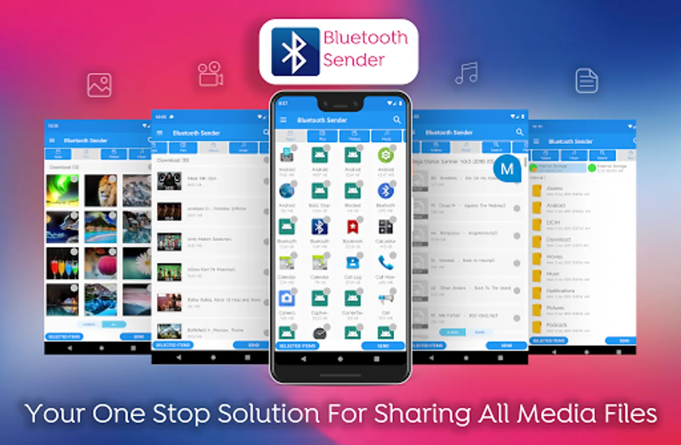 Another convenient and flexible feature of the Bluetooth Sender is that you can select Applications, Audios, Videos, Pictures and all sort of files, all together and share or transfer it. There is absolutely no restriction on what to share or transfer.