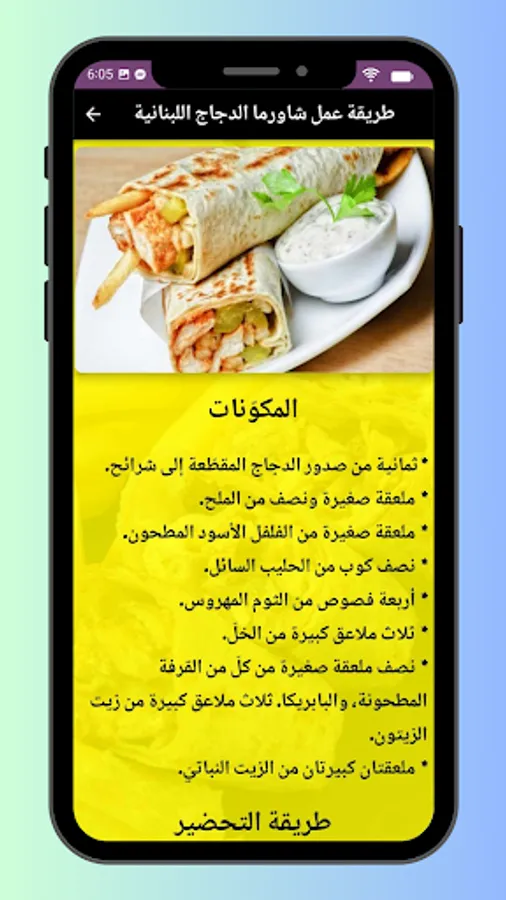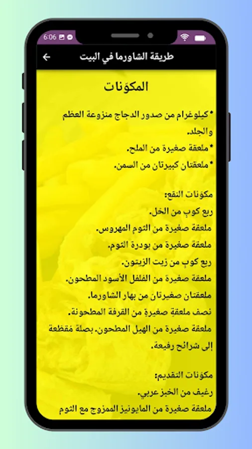 The application "How to prepare chicken shawarma like a restaurant without an Internet connection" contains many successful and easy recipes for preparing chicken shawarma.