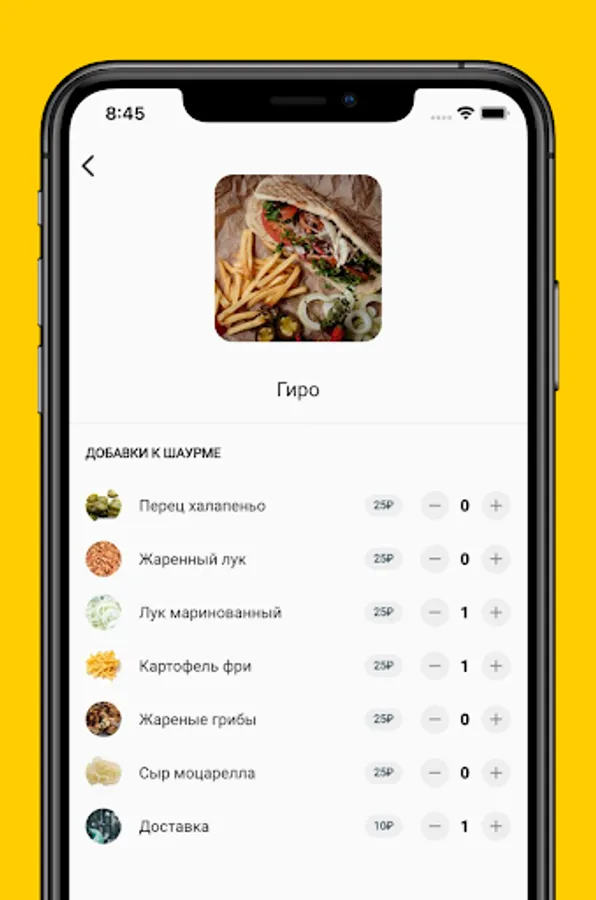 Our application is an opportunity to order and customize shawarma right in your smartphone.
