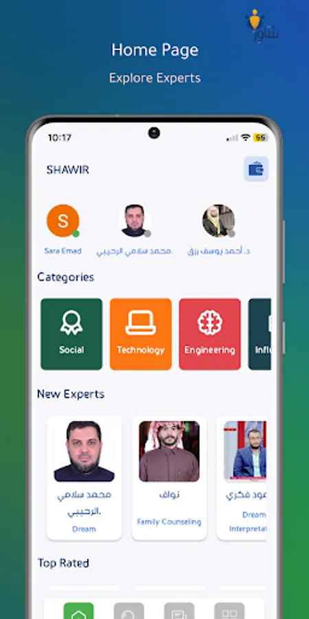 Customers can browse various experts, specialties, and services. With just one click, customers can connect with an expert through chat, voice, or video call, ask questions, or seek consultation or counseling in various domains. Shawir makes your private consultant closer to you than ever before.