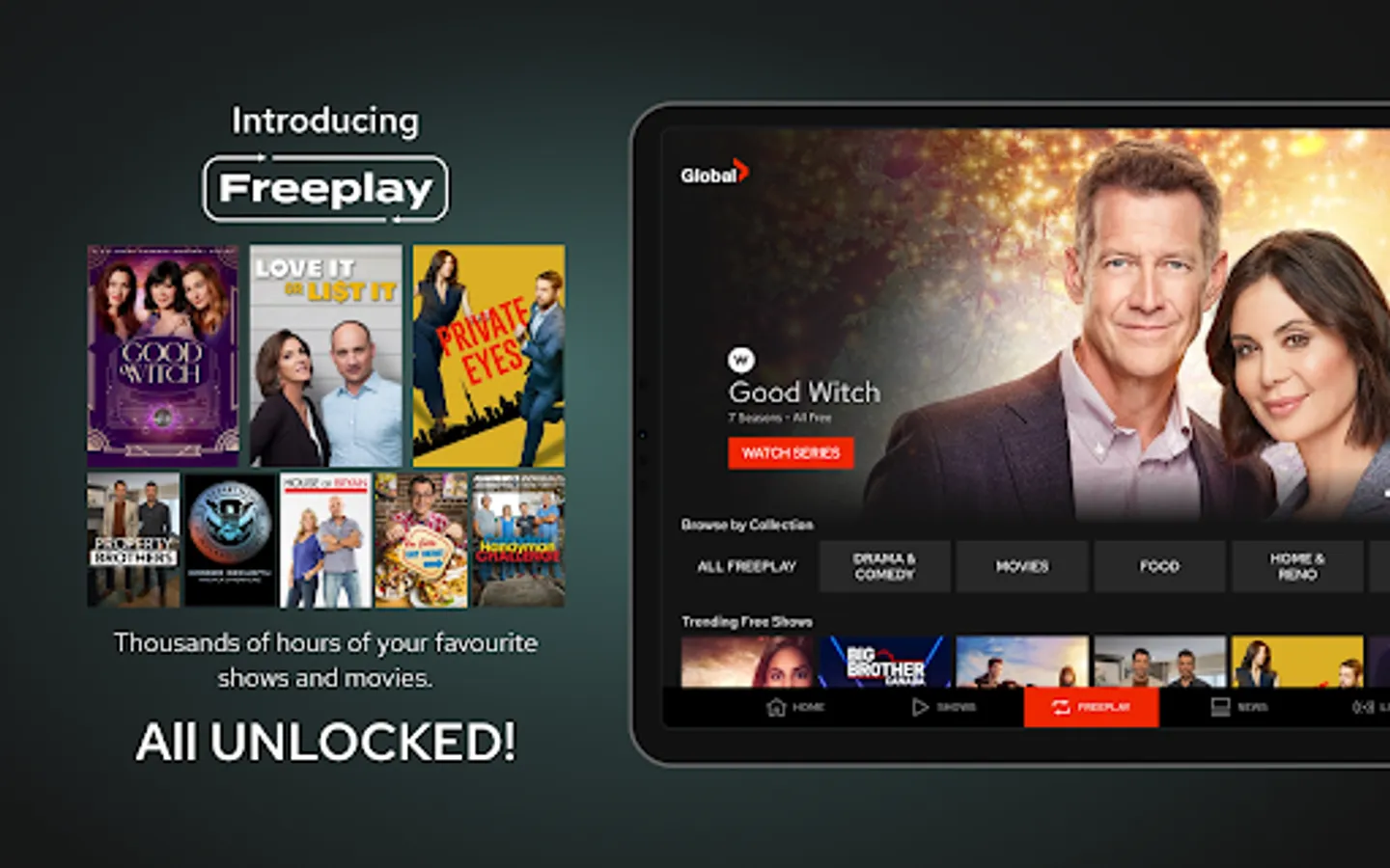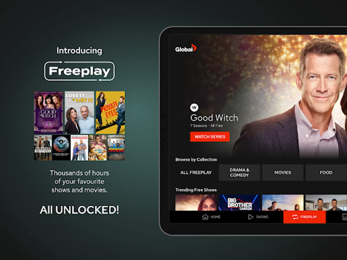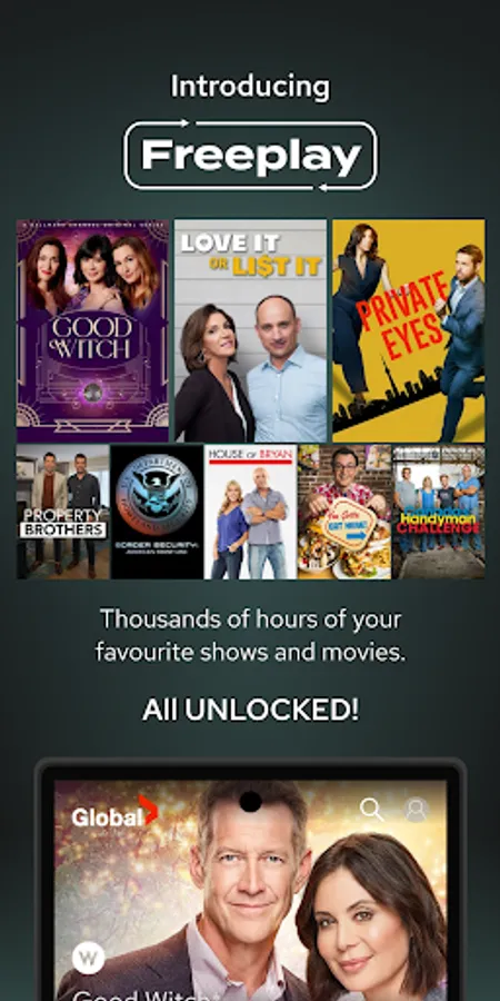 And Now Introducing Freeplay: Thousands of hours of your favourite shows and movies. Enjoy them again, or see them for the first time. Absolutely FREE.