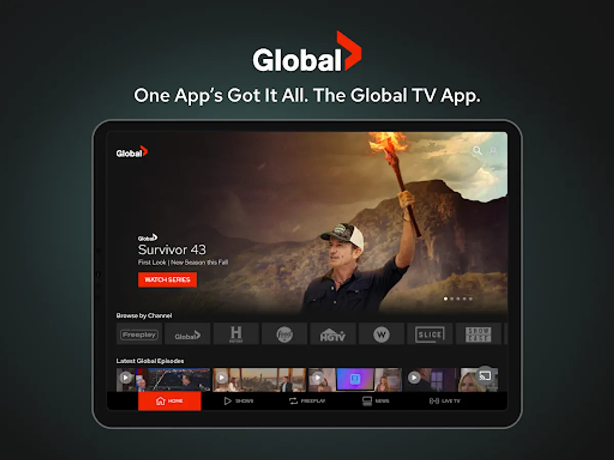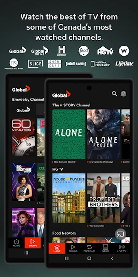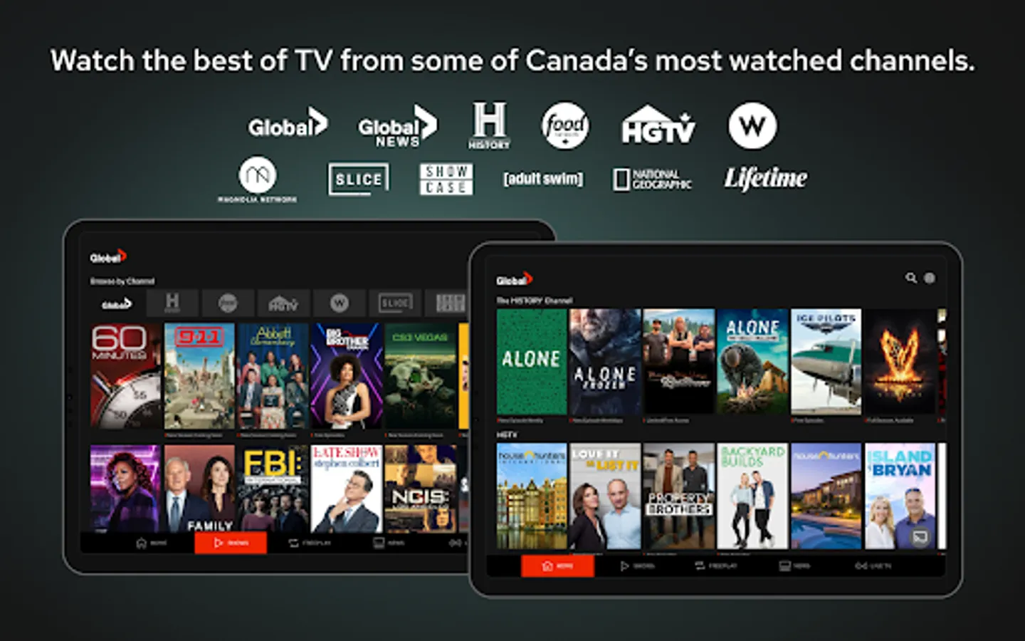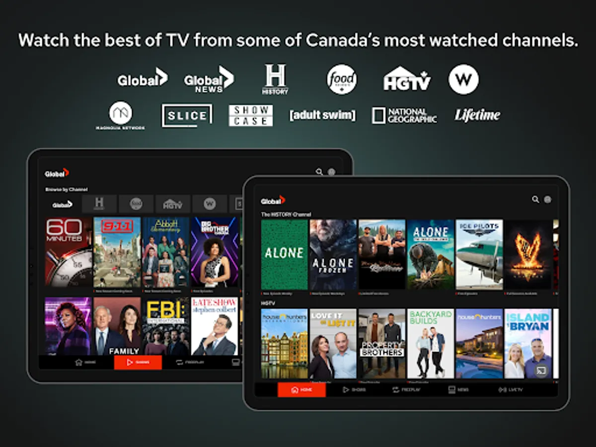 One App's Got It All. The Global TV App is now home to some of the most watched networks in Canada: Global, Food Network, HGTV, W Network, Slice, Showcase, History, Adult Swim and National Geographic!