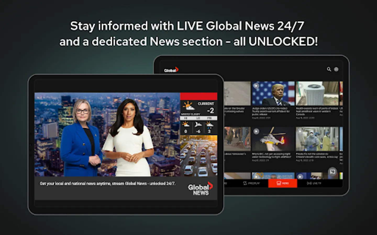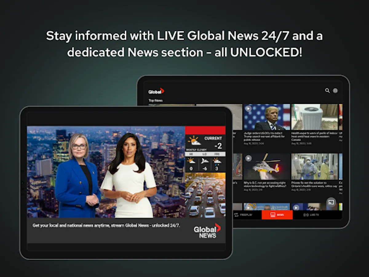 Plus stay informed with Global News - giving you unlocked 24/7 access to local and national news streams across Canada including: BC, Toronto, Edmonton, Calgary, Okanagan, Peterborough, Montreal, Halifax, Winnipeg, Regina, Saskatoon, Kingston, Lethbridge and National.