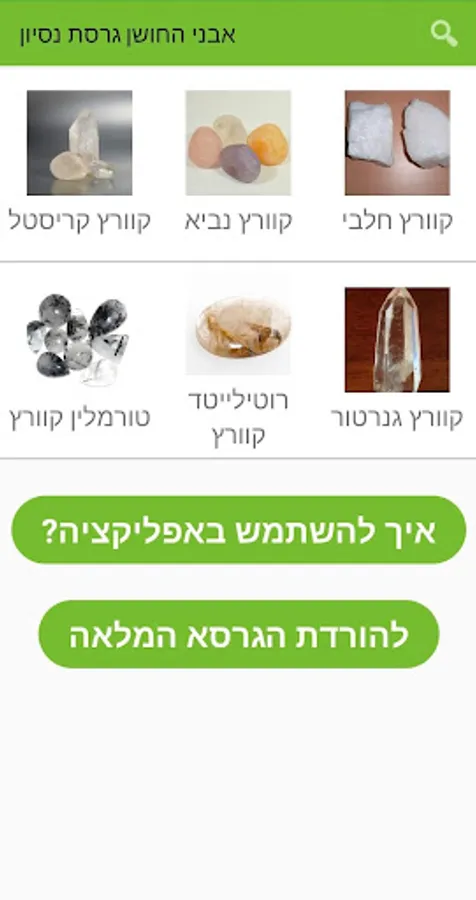 אפשרות חיפוש אבנים, ומידע עליהם