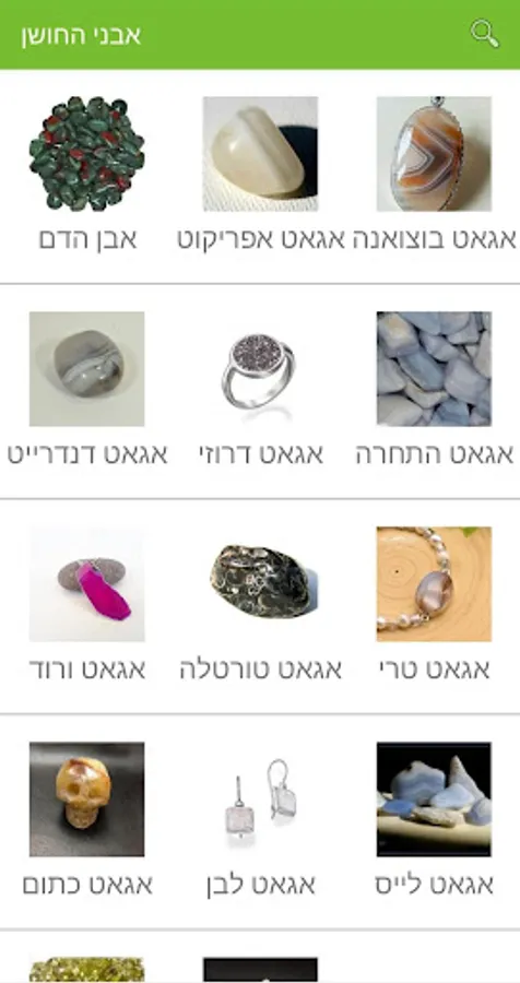 אפשרות חיפוש אבנים, ומידע עליהם