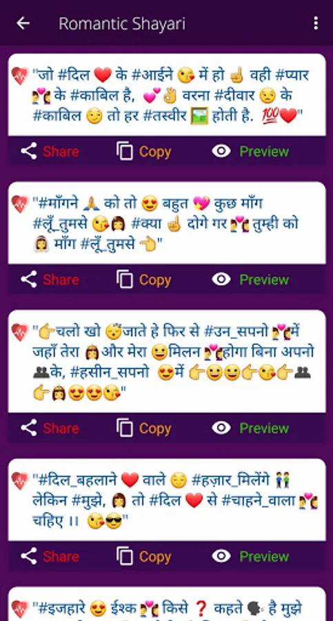 👉Working without internet. Save your Favorite Love Shayari status in your favorite list.