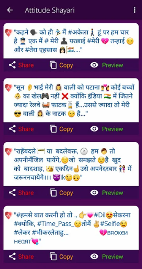 👉We added love Attitude Status in Hindi for the WhatsApp Hindi Shayari app with emoji.