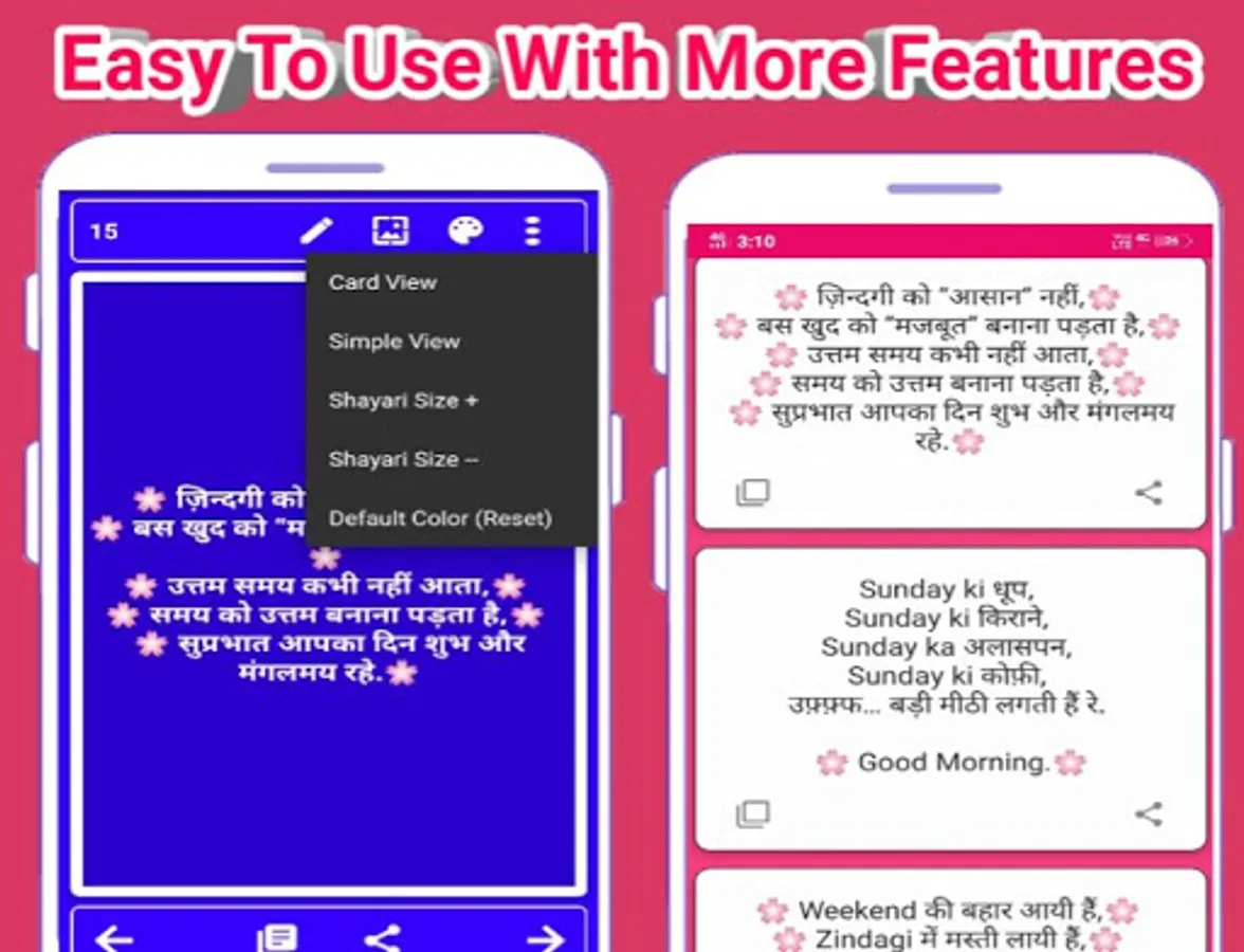 This amazing app allow you to see shayari with Hindi fonts which will make it easier for you to read Shayari.