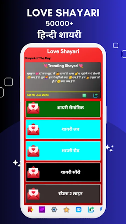 Love Shayari: Shayari in Hindi, Romantic, प्यार & मोहब्बत शायरी, Sad Shayari &4K wallpaper app is one of the best available phones in India, for the year 2023-2024.