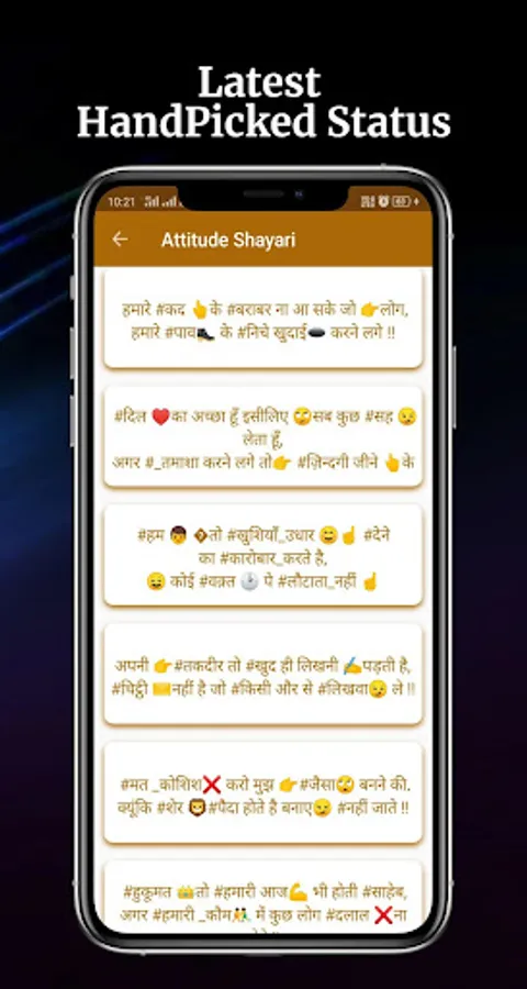 Best Status and shayari application contain best collection of Hindi and English shayari and status.