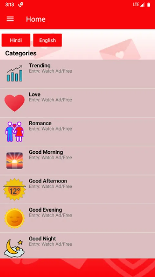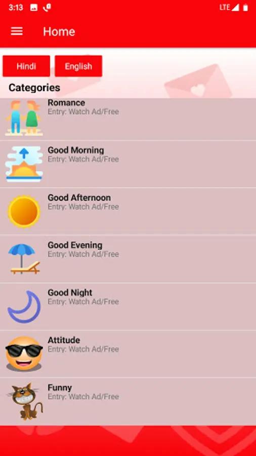 You will see wide range of categories on Sayari Lover App.