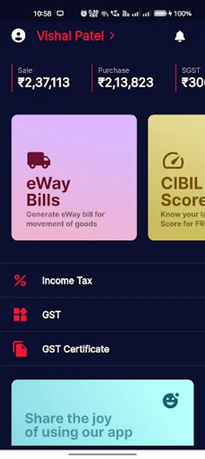 * In GST you can also Download & Share Your all GST File Report like GSTR1, GSTR2A, GSTR3B