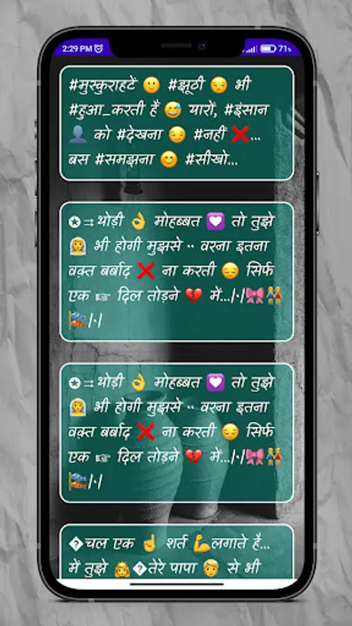 This is one of the nice collection of latest pyar mohaabat ,love shayari app which is totally free and no internet connection required . Love is one of the important part of human life for share there feelings to some we must need a proper text which is attached by our emotion for that this is best and suitable app for you just use and share ultimate feelings .