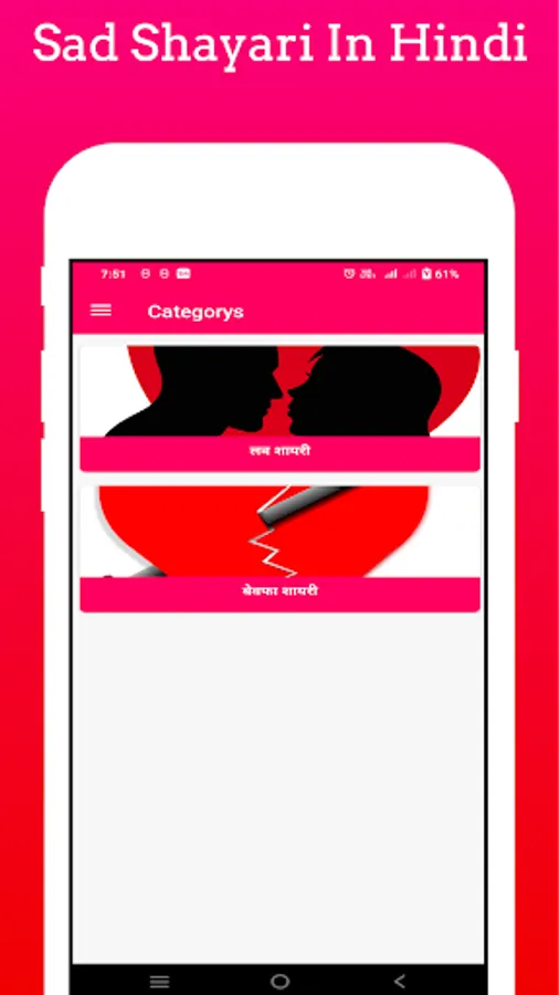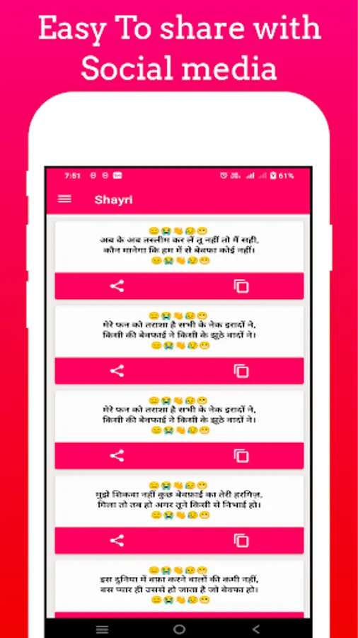 One of the best Shayari apps of All time. This app contains the largest collection of Bewafa Shayari, Hindi Shayari, and Sad Shayari.