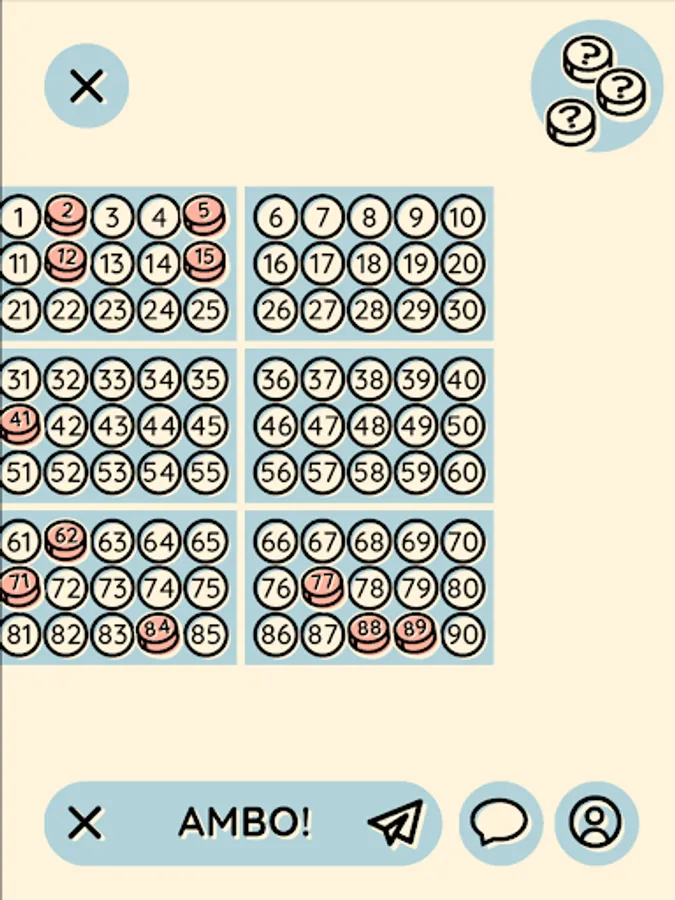 • It is played like normal bingo! By clicking on the top right, the board draws and the others tick the tokens to cover the numbers.