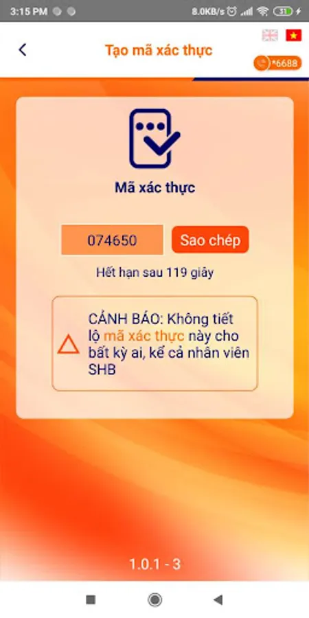 Mobile Soft OTP application is used to generate confirmation codes when making transactions