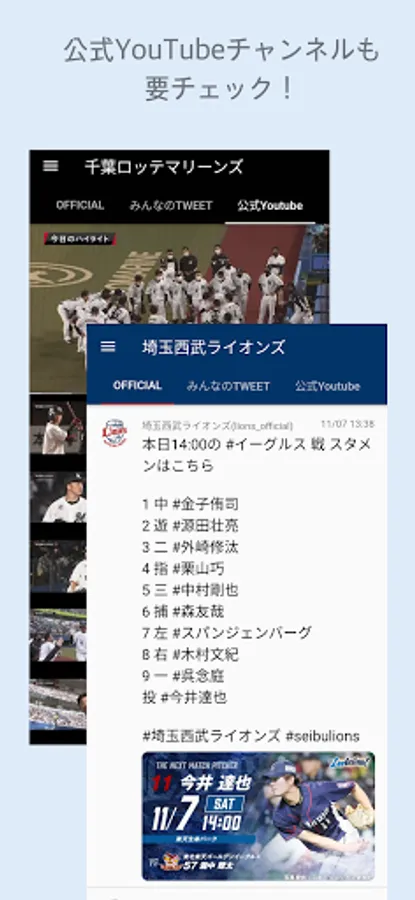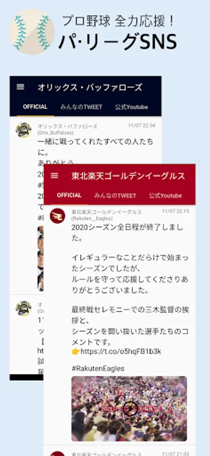 This app is only compatible with 6 professional baseball Pacific League (Orix Buffaloes, Fukuoka Softbank Hawks, Hokkaido Nippon-Ham Fighters, Chiba Lotte Marines, Saitama Seibu Lions, Tohoku Rakuten Golden Eagles).