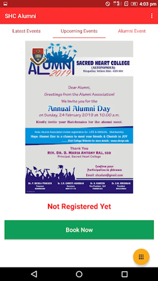 Sacred Heart College Alumni Association, Tirupattur, Vellore Dt, Tamil Nadu
