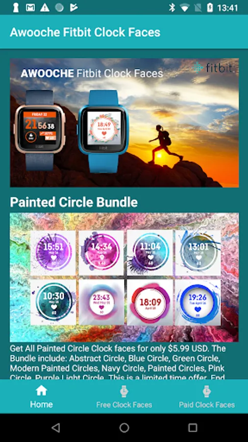 The application present for you the current and the new clock faces by Free and Paid category. You can open from the app the Fitbit Mobile Application and install any Clock face on your watch from one tab.