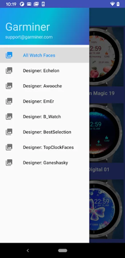 We developing watch face for Garmin Rounded Smart Watch. This application present to you all our watch faces and you can install any of them from Connect IQ Gallery.