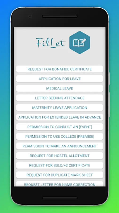 Fillet is an application initiated by the students of EMEA College of Arts and Science,Kondotty; in collaboration with ASAP (Additional Skill Acquisition Program).It is an online letter system app mainly concerned for the students to apply for leave and other purposes. It is free and easily accessible for the students at anytime,anywhere.