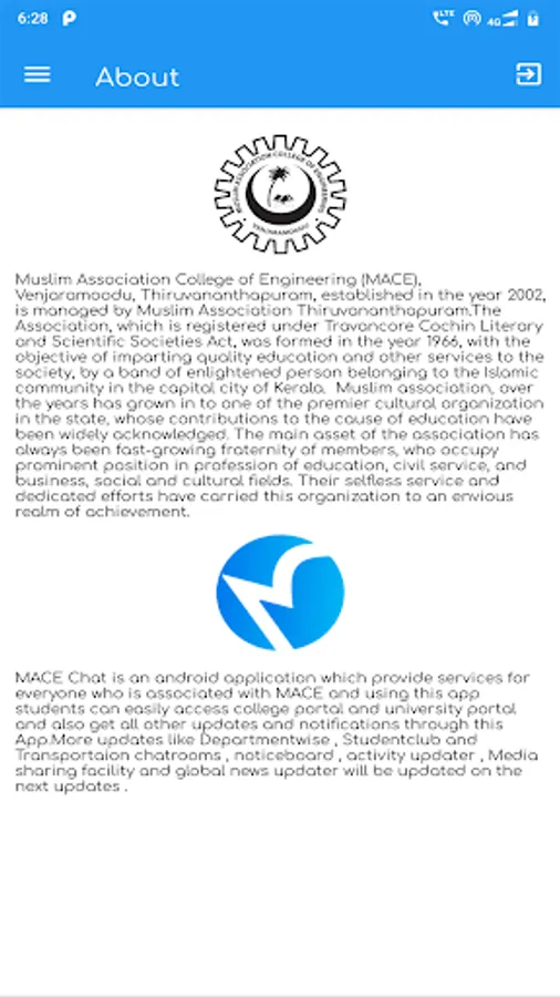 MACE Chat is an android app which have a common chat platform for mace. Includes college student portal and university student portal. and also includes the notes and services of ktu students website.