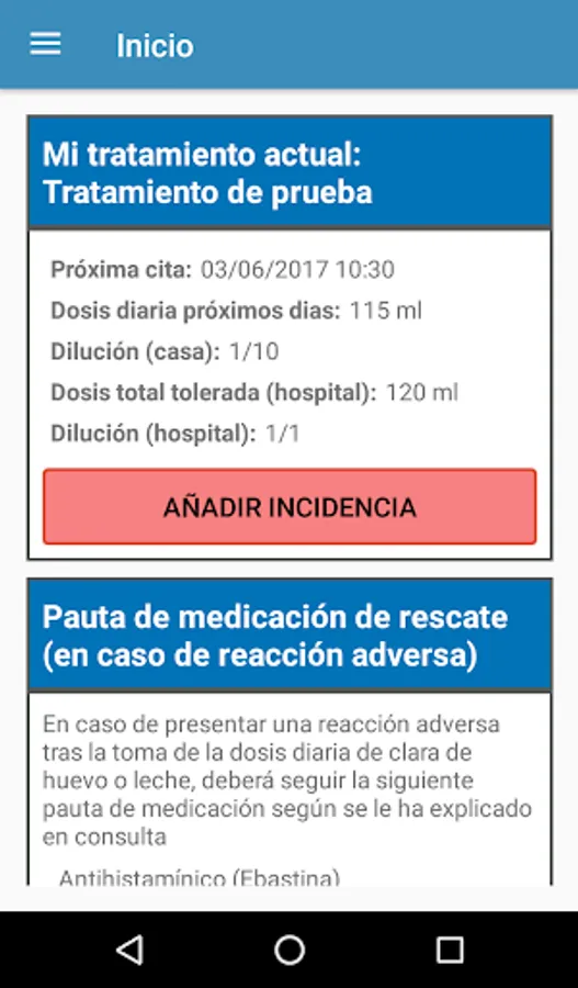 Application of communication between patients suffering from food allergies and medical related. Its main objective is to provide basic information about the current treatment that the patient is following, as well as facilitating the introduction of adverse events occurring during treatments.