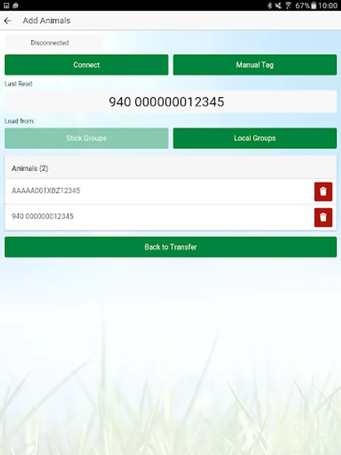 After the tags have been read (or manually entered through the keypad), they can be sent to NLIS as part of an animal movement record.