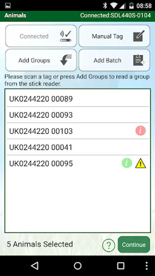 - Connects via Bluetooth to the Shearwell Data EID Stick Reader. See http://www.shearwell.co.uk/p/113 for details.