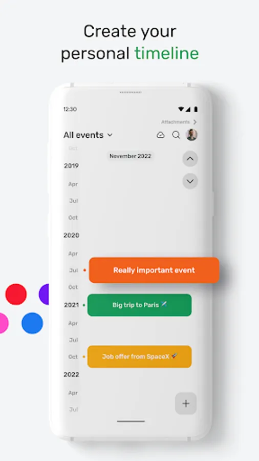Lifely is a timeline app that allows to track achievements, significant memories, milestones and other important moments in a simple and convenient form, while performing a minimum of actions. Our diary journal event tracker instantly synchronizes with the server and uses reliable data encryption algorithms to protect your journaling.