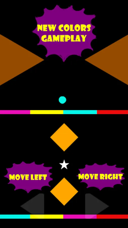 This is a new colorful geometry game with a lot of geometry shapes like circle, rectangle, triangle, square that gives it a nice look, full of fun, where you have to change color, shift colors, avoid colors, and no need to tap a ball, just move the ball from left to right and vice versa.