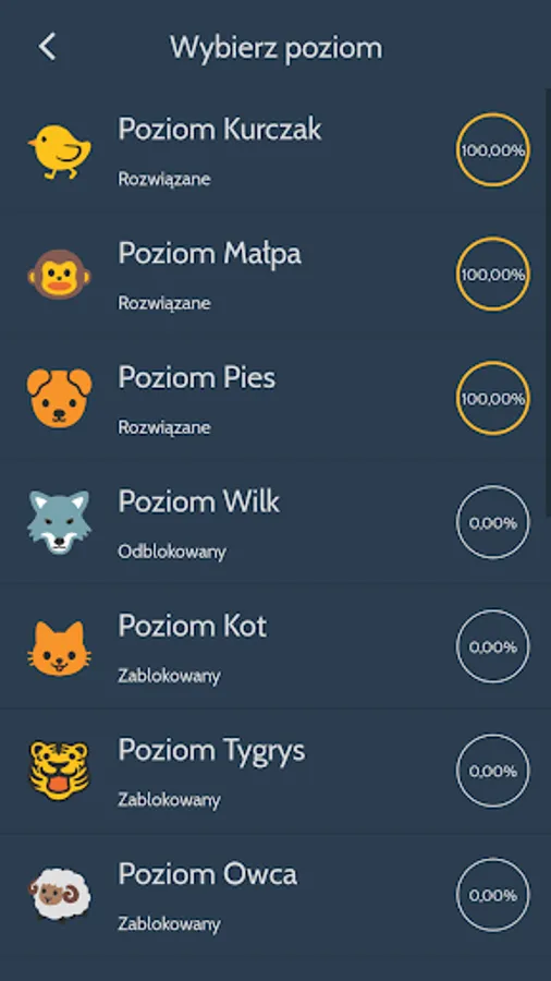 The words have been divided into levels. Each level contains a few (a dozen) words to guess.