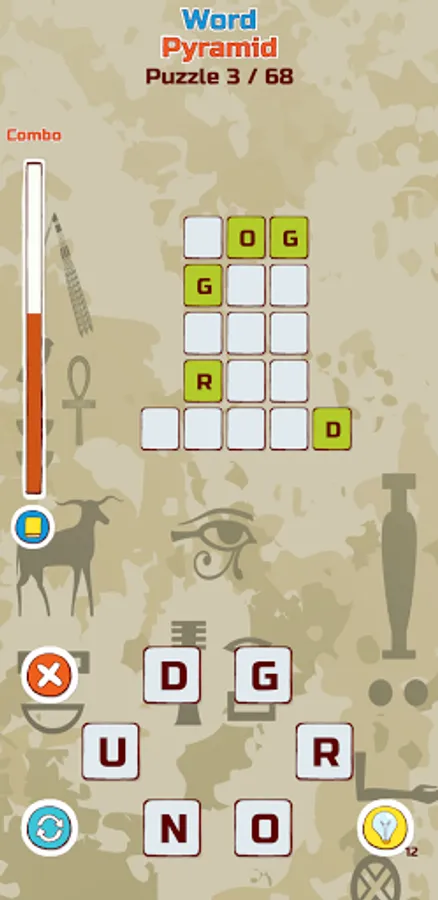 Combo mode is an additional bonus. In Combo mode, you will receive an additional hint for each correctly guessed word in the pyramid. You will start Combo mode if at least three guessed words in a row are in the pyramid. Any word not in the pyramid turns this mode off.