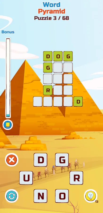 Not all the words you come up with are in the pyramid. Nothing is lost! Each such word is treated as a bonus and after entering 20 words you will receive a free hint.