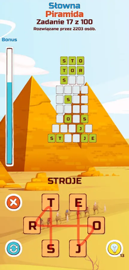 Not all the words you come up with are in the pyramid. Nothing is lost! Each such word is treated as a bonus and after entering 20 words you will receive a free hint.