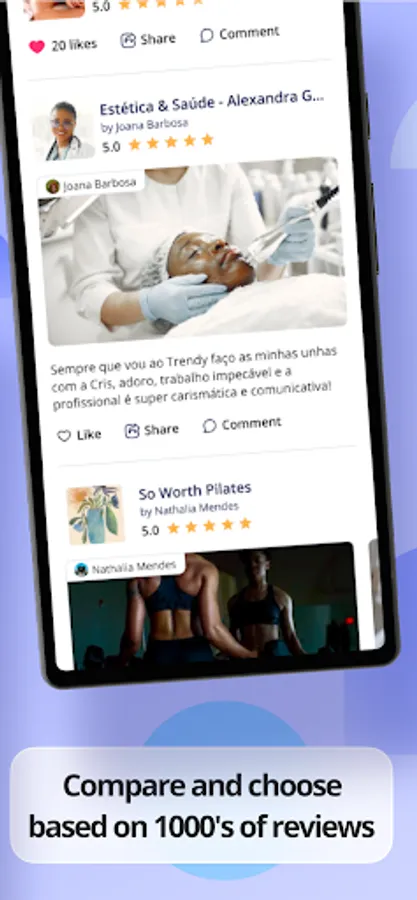 Compare and choose the best spas, massages, yoga studios, nutritionists, psychologists, personal trainers, life coaches, hairdressers, manicures, barbershops and many other services to take better care of yourself