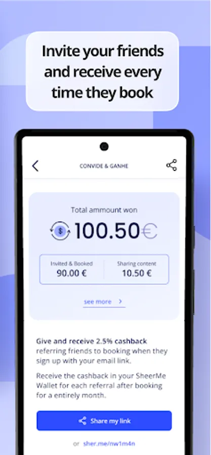 Earn cashback on each booking, Earn top up codes from our sponsors and partners, or get your wallet topped up by your employers through our Corporate Benefits Subscription. With sheerME you always have money in your wallet to discount on your next booking.