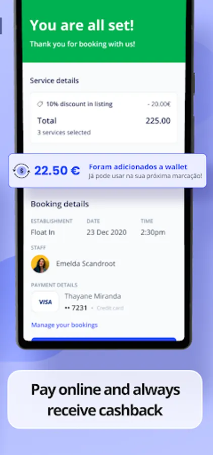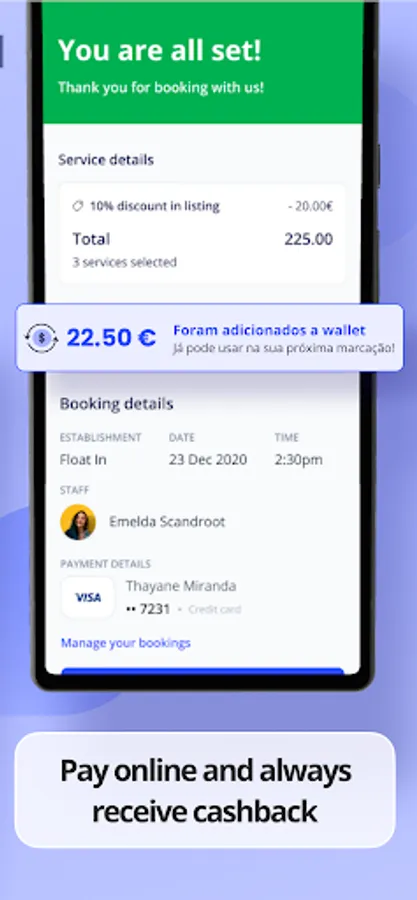 Pay with cashback and receive up to 3% of the booking amount back, on each reservation.