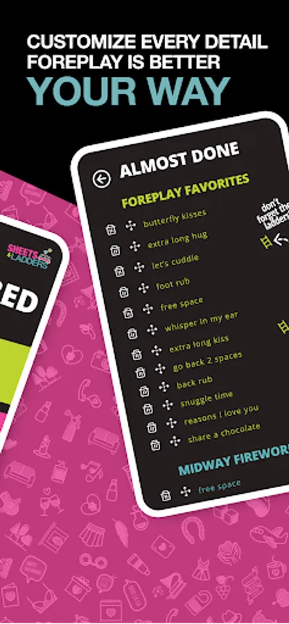 This is a companion app to the Sheets & Ladders fitted sheet product. This app helps you brainstorm ideas you can write in on your bedroom game sheet, as well as plan your game's prompts and activities.