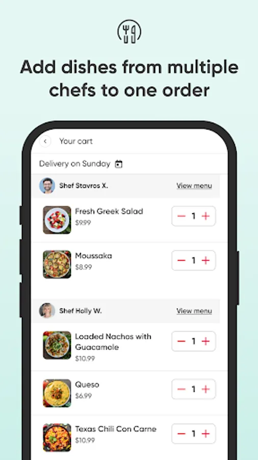 Shef offers the greatest selection of authentic, homemade dishes from around the world by connecting you with talented shefs in your neighborhood. All dishes are made to order, with freshly sourced ingredients and the care that can only come with a homemade meal. Dishes arrive refrigerated — just heat, eat and repeat!