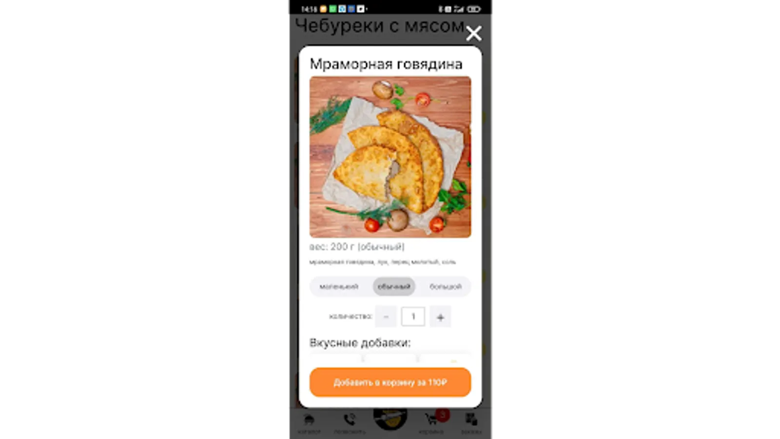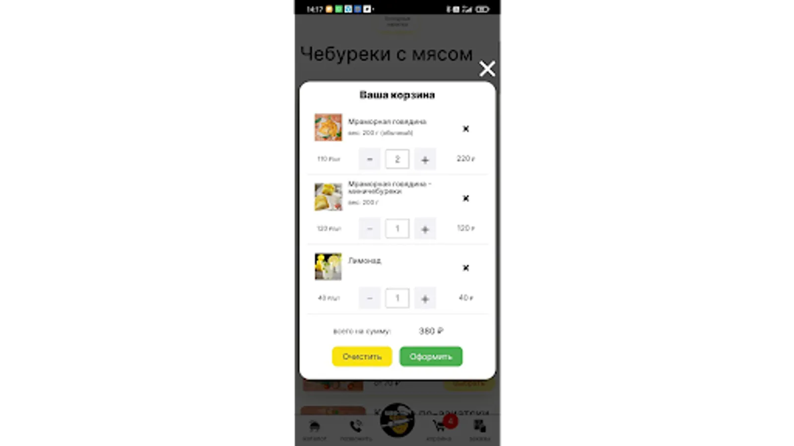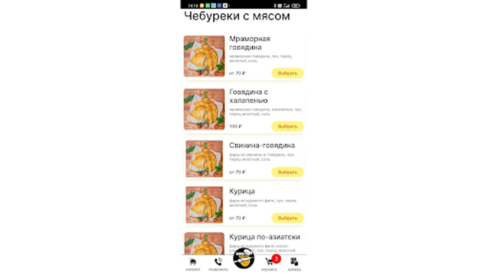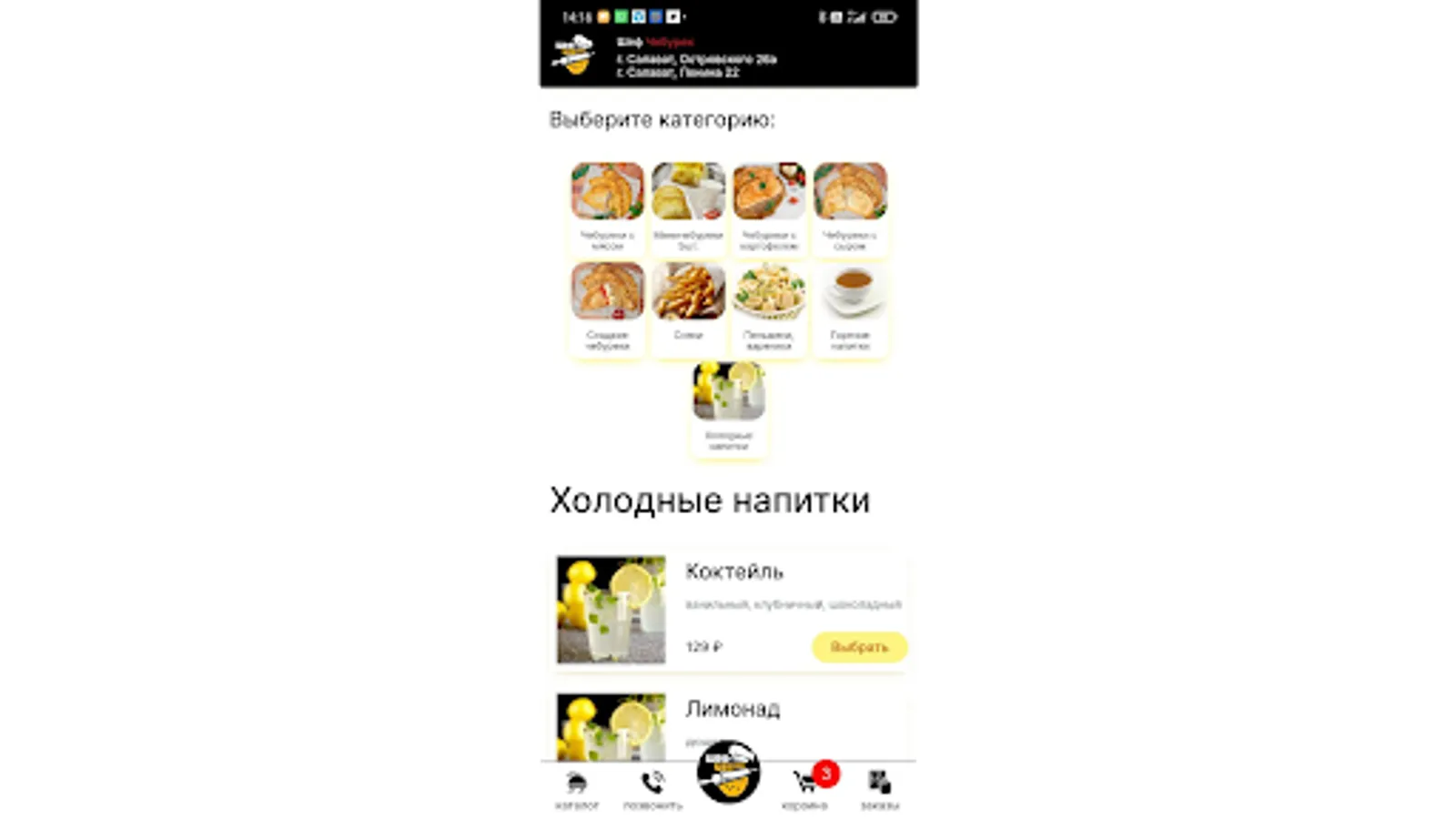 The application allows you to order chebureks, as well as other goods of the "Chef Cheburek" cafe in Salavat.