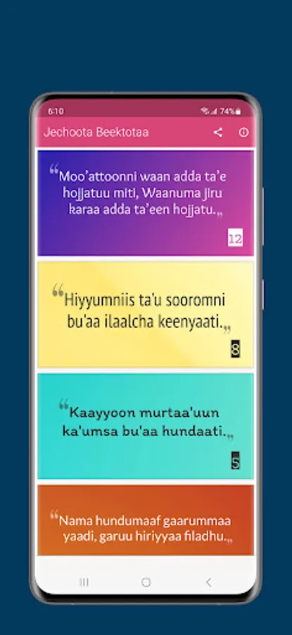 Jechoonni Beektotaa yaada gaarii fi miira gaarii namaaf kenna. Akkasuma barnoota hedduu irraa barachuun ni danda'ama. Jireenya guyyuu fooyya'aafi gammachiisaa ta'e jirachuuf Jechootni beektotaa baay'ee nama barbaachisa. Dhiphinaafi muddama namarraa fageessuun ilaalcha gaarii ofiifi ollaa keetiif akka qabaattu si taasisa.