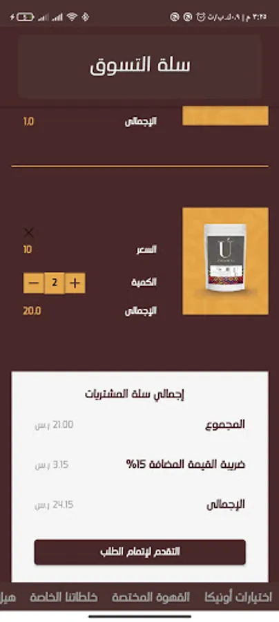 The application provides ideal types of coffee with high quality within the Kingdom of Saudi Arabia