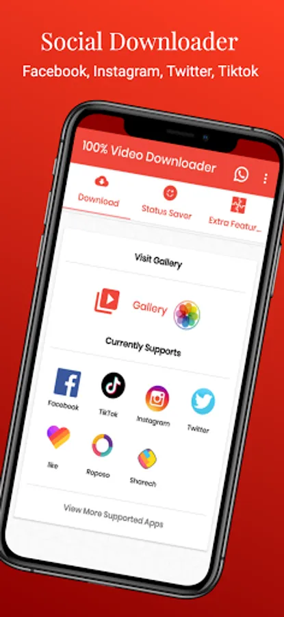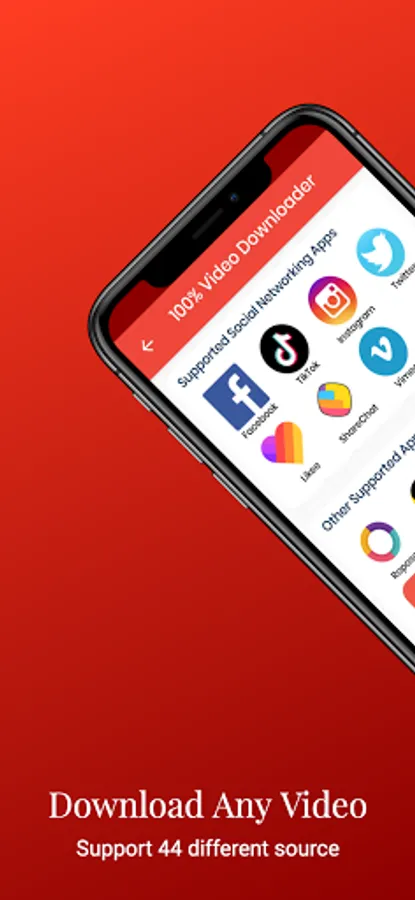 This app supports up to 44 websites to download content from: Facebook, Tiktok, Instagram, Twitter, Likee, ShareChat, Vimeo, Roposo, SnackVideo, Dailymotion, TED, Dubsmash, Mitron, VK, Mediafire, etc.