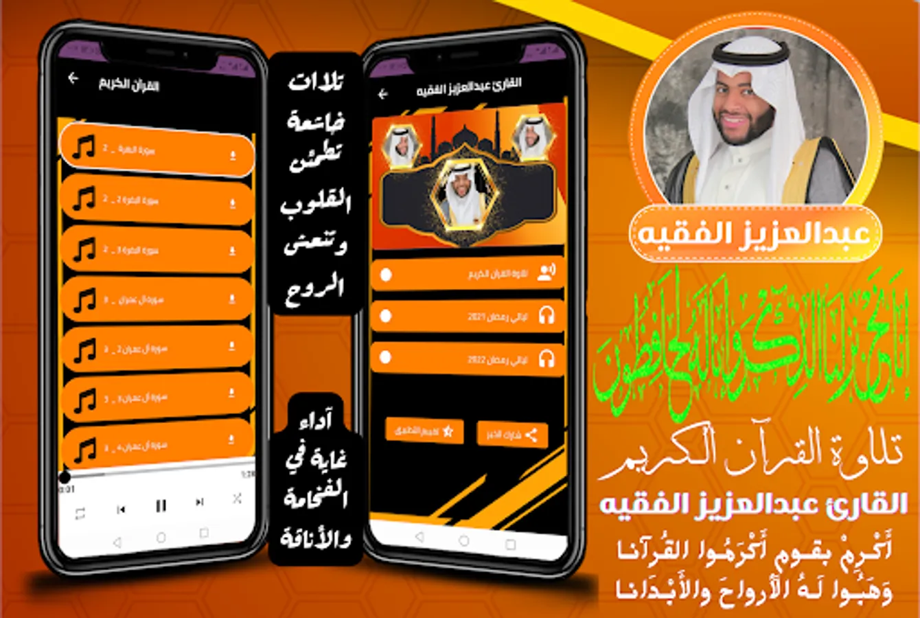 The application of the Quran reciter Abdulaziz Al-Faqih allows you to hear and download the Noble Qur’an with the voice of Sheikh Abdulaziz Al-Faqih, and you can download the Noble Qur’an to your mobile phone easily and conveniently through one application that includes humbled recitations of the Noble Qur’an mp3 in the voice of Abdulaziz Al-Faqih