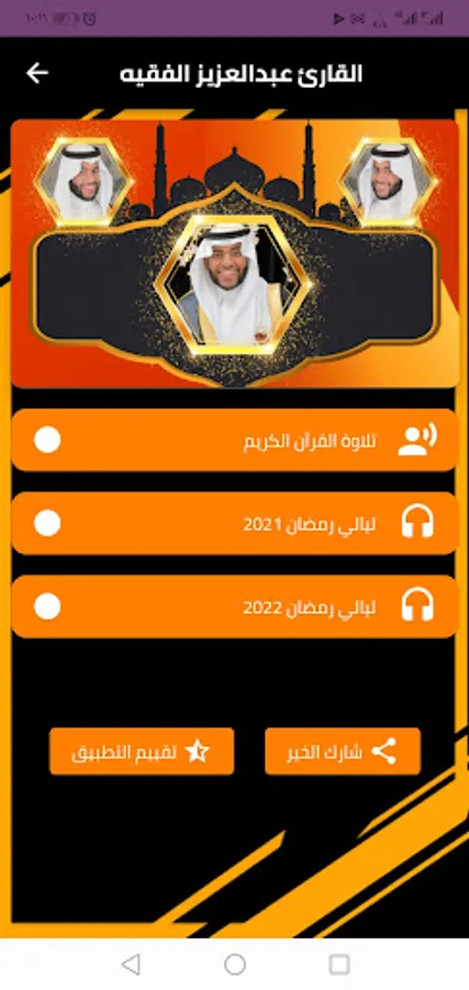 ⬅️ If you are passionate and love listening to the Qur’an, the Sheikh Abdul Aziz Al-Faqih application to download the Noble Qur’an will help you in that, and the application will help you download the Noble Qur’an with the voice of the reciter Abdulaziz Al-Faqih to your phone easily