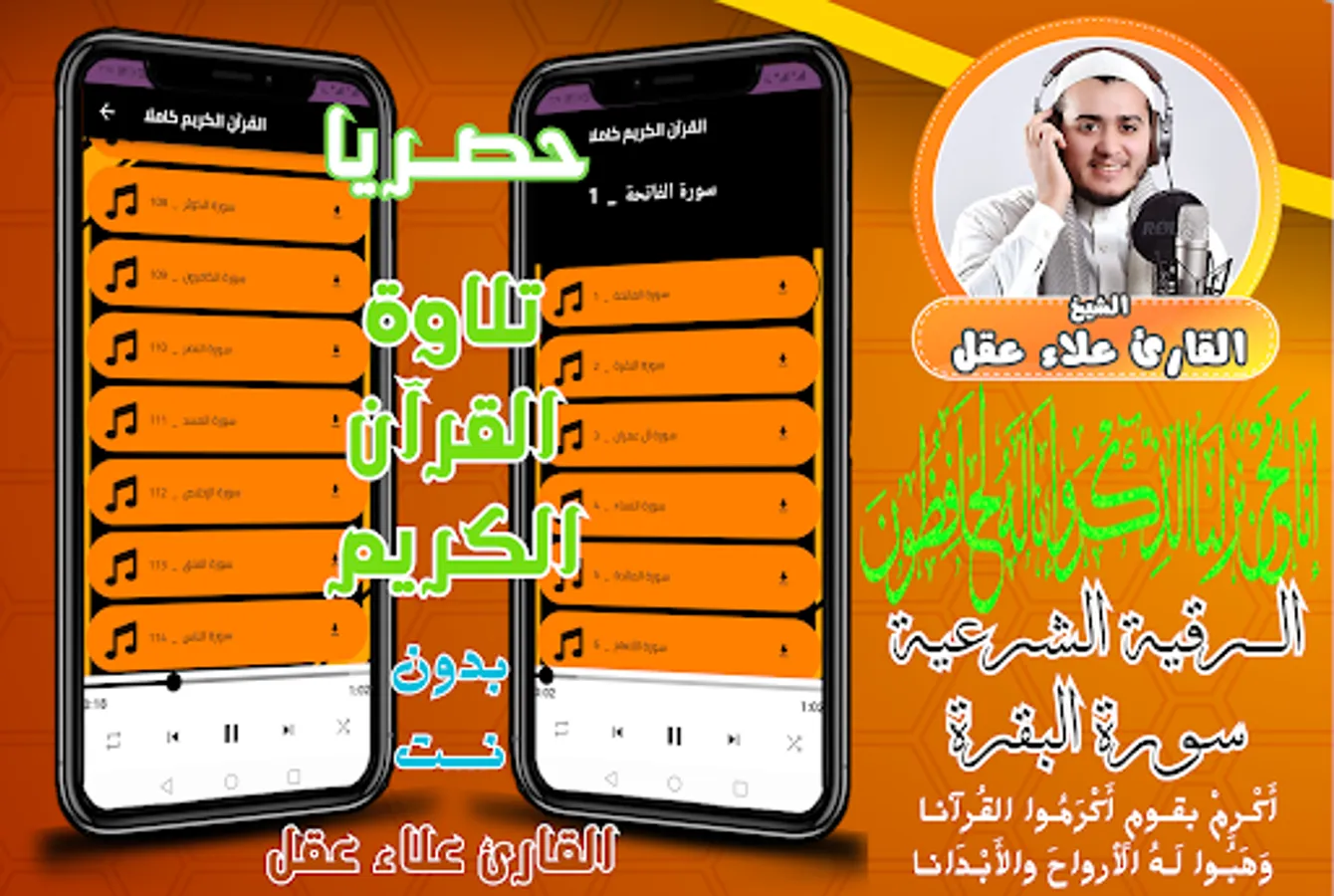 The application of Alaa Aql’s Quran without the net will help you with that, just as the application will help you in downloading the Holy Qur’an with the voice of Alaa Aql, sheikh alaa akl, to your phone with ease and legal paper for the evil eye, envy and magic without a voice net