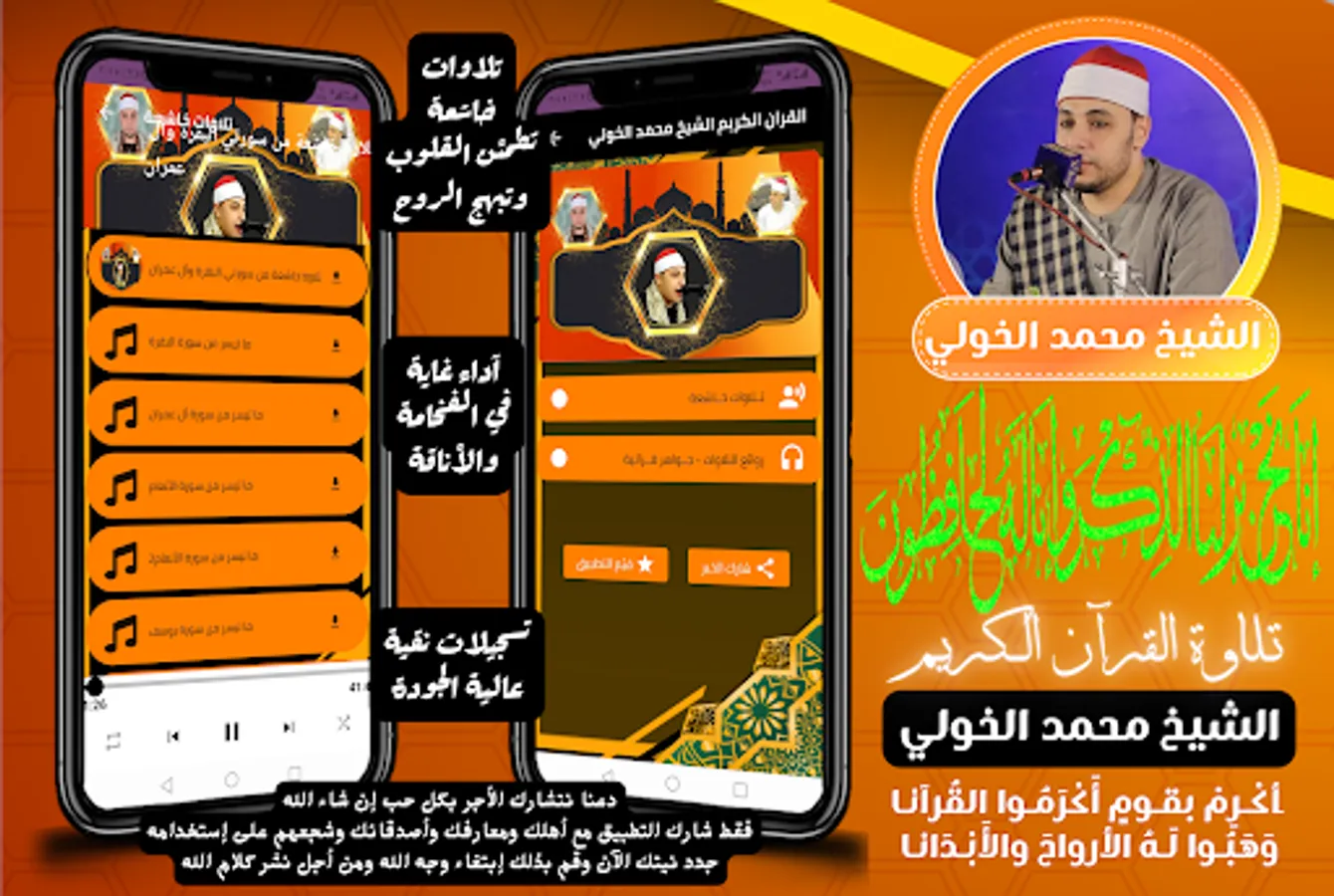 The application of the Qur’an, Sheikh Muhammad Al-Khouli, allows you to hear and download the Noble Qur’an with the voice of the reciter Muhammad Al-Khouli.