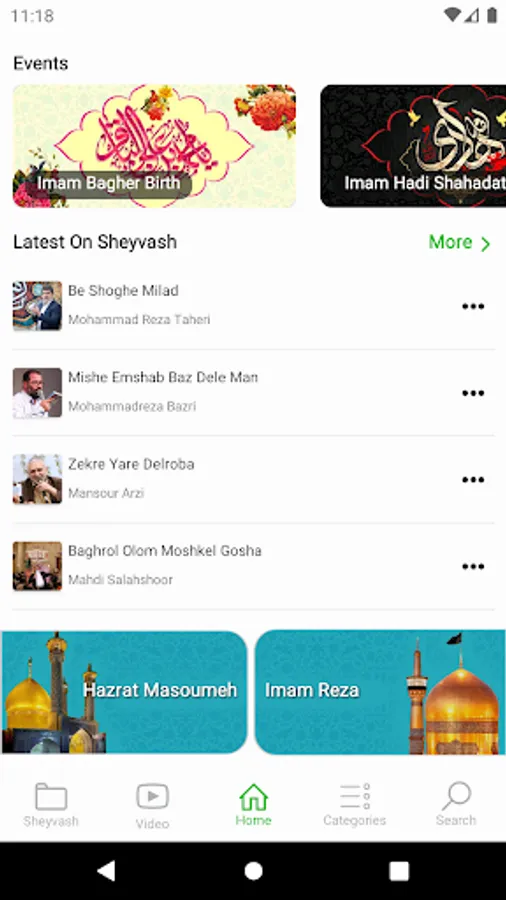 Sheyvash is a collection and organization of content on "Ahl-beit-esmat" which contains speech and Maddahi on this topic in form of sound and video that is presented at variety of collection to the user.