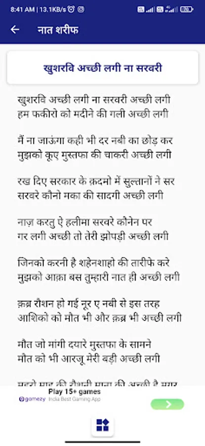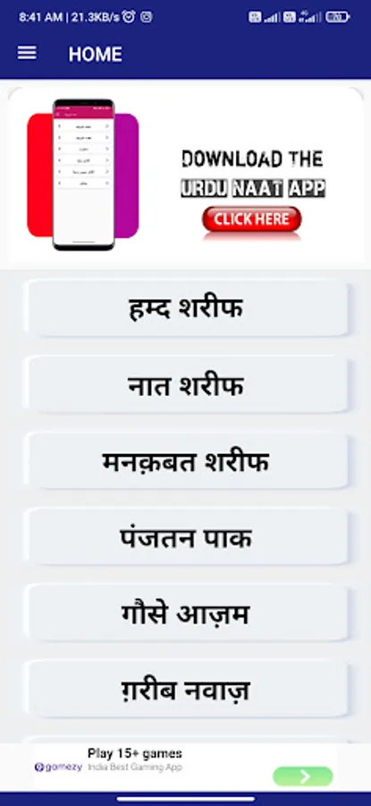 Is app me NaatSharif ke saath our bhi categories milge jese Hamd Naat manqabat, punjetan paak ghosepaak gareeb nawaz gam ke Kalam salam our dua